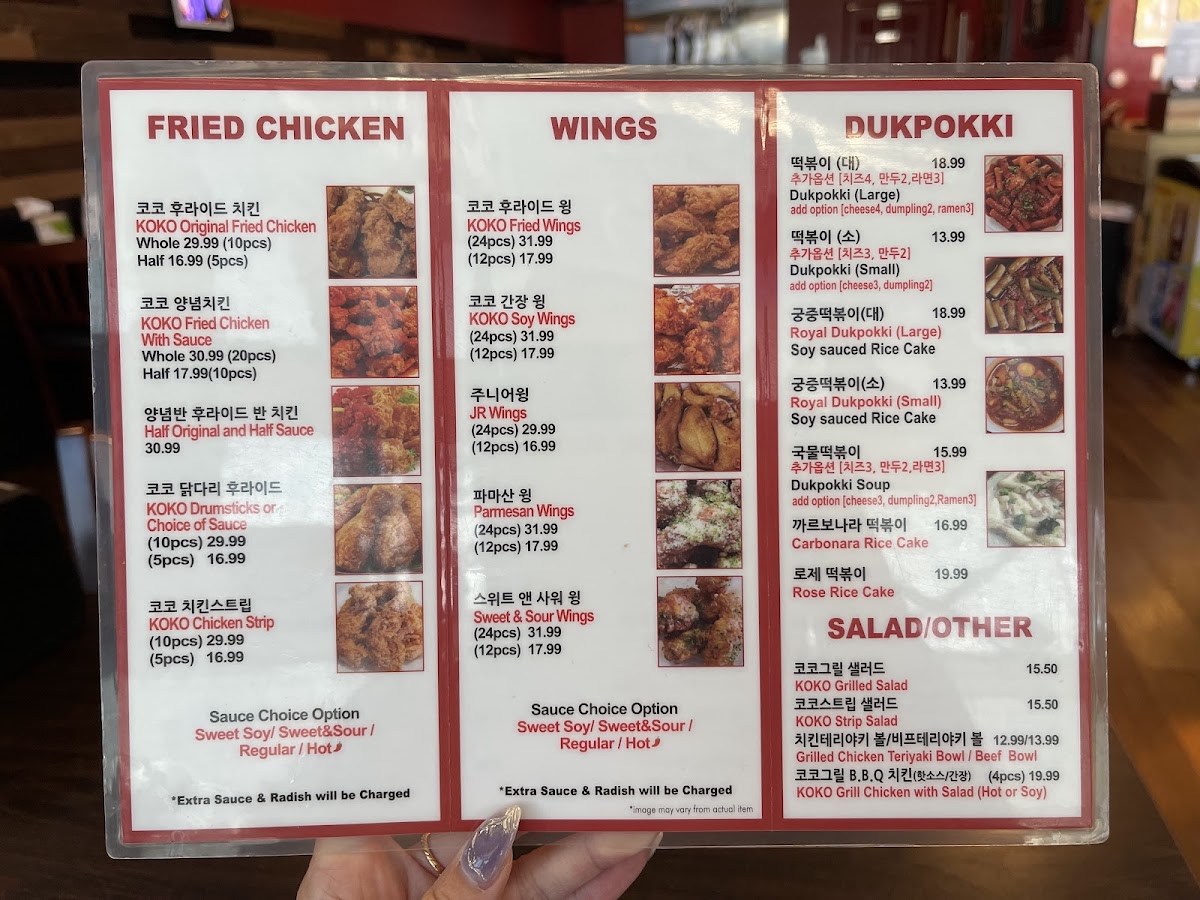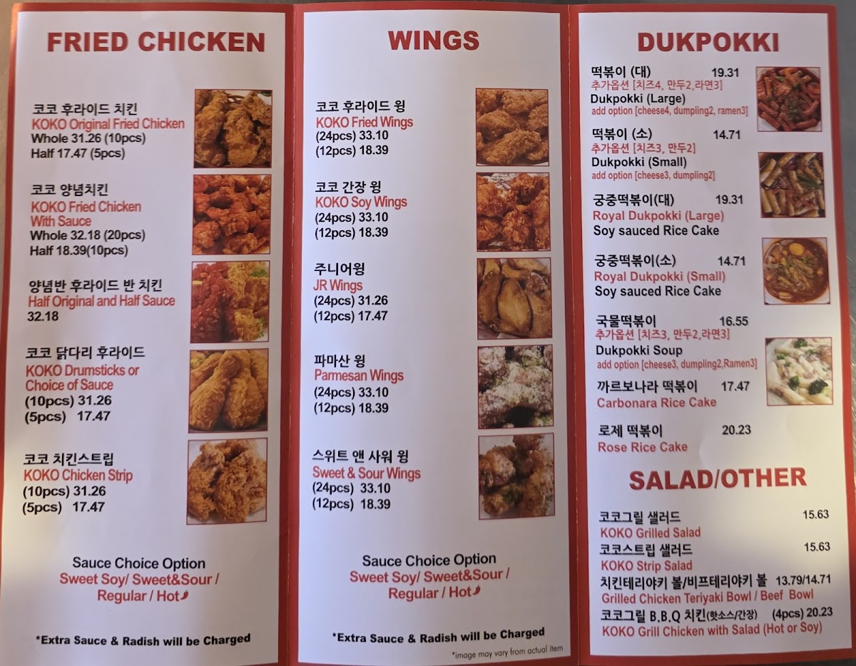 - Fried Chicken: Try the classic KOKO Original Fried Chicken or opt for the irresistible KOKO Fried Chicken with Sauce. With options like drumsticks and chicken strips, each bite promises a crispy and flavor-packed experience.